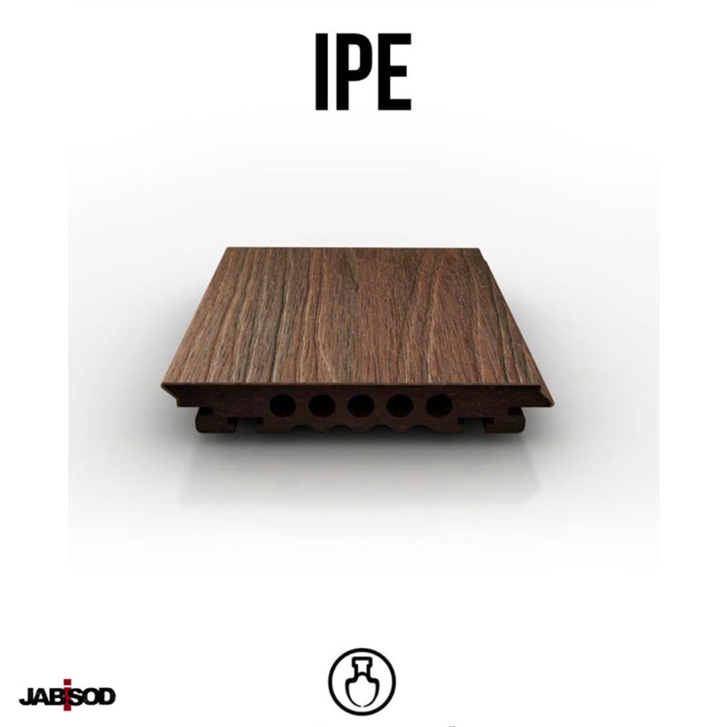 Exterpark Tech CUBE, shield-capped wood grain surface. Manufactured by a co-extrusion process featuring an asymmetrical patented profile with invisible gaps, a solid body, a top surface with wood texture and bottom grooves for the Magnet S Clips.